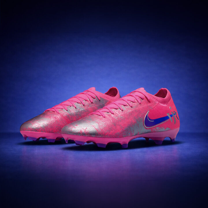 In the second iteration of his signature Vini Voa Mercurial, a new era of Vini is unlocked, bringing his speed and confidence to the pitch. If there is one thing Vini Jr. is known for it’s his bold style and confidence. The superstar’s latest Mercurial takes inspiration from his childhood obsession with wearing bright and bold footwear, while also giving players chromed out style for more Vini Magic. The Bright Pink upper is paired with blue and purple and chrome details, ready to take your game to new heights.