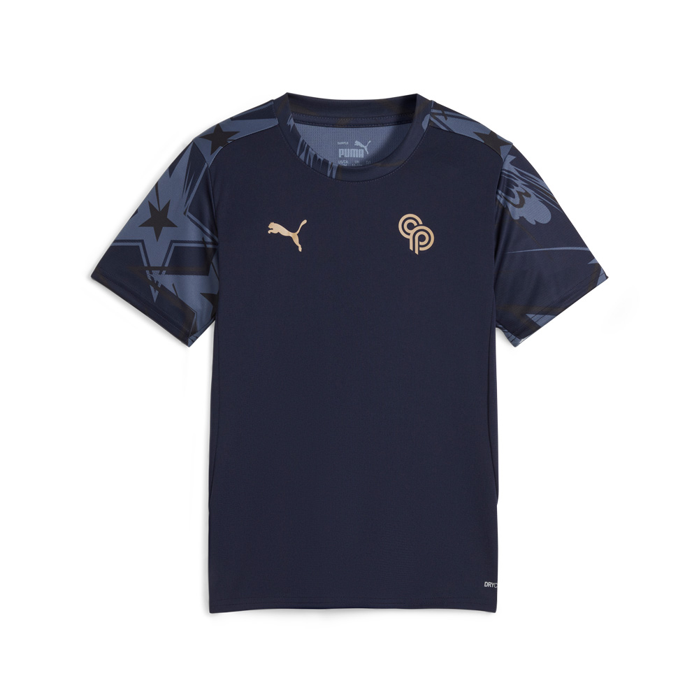 Show off your support for Christian Pulisic in this PUMA Christian Pulisic Youth Training Jersey that helps you bring his can?t miss style and attitude wherever you go. This collection is all about Christian and his national team?s quest to raise the cup during one of Soccer?s biggest tournaments. This PUMA Youth Training Jersey is a regular fit and length, made on jacquard fabric, has a crew neck and short sleeves, and is made with dryCELL technology to keep you free of sweat. With American-flag-inspired star print details and Pulisic?s own CP logo this training jersey are sure to show off your support.