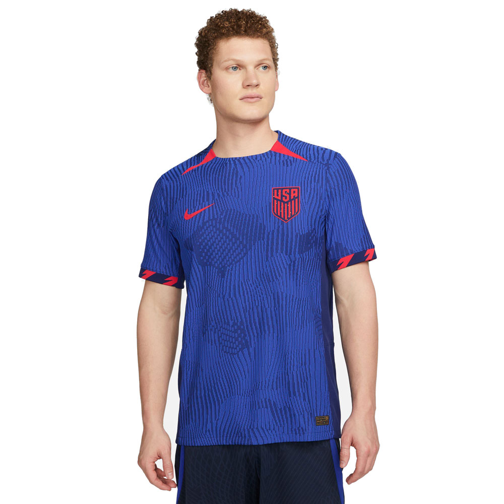 The Nike USA 2023 Men’s Match Away Jersey is the same authentic design worn by the professionals on the field. This jersey is packed with modern technology and USA DNA to make it perfect for any USA fan. This USA Jersey is a part of the Nike Match Collection that combines authentic design with lightweight, breathable, and sweat-wicking fabric to keep any player dry and comfortable.